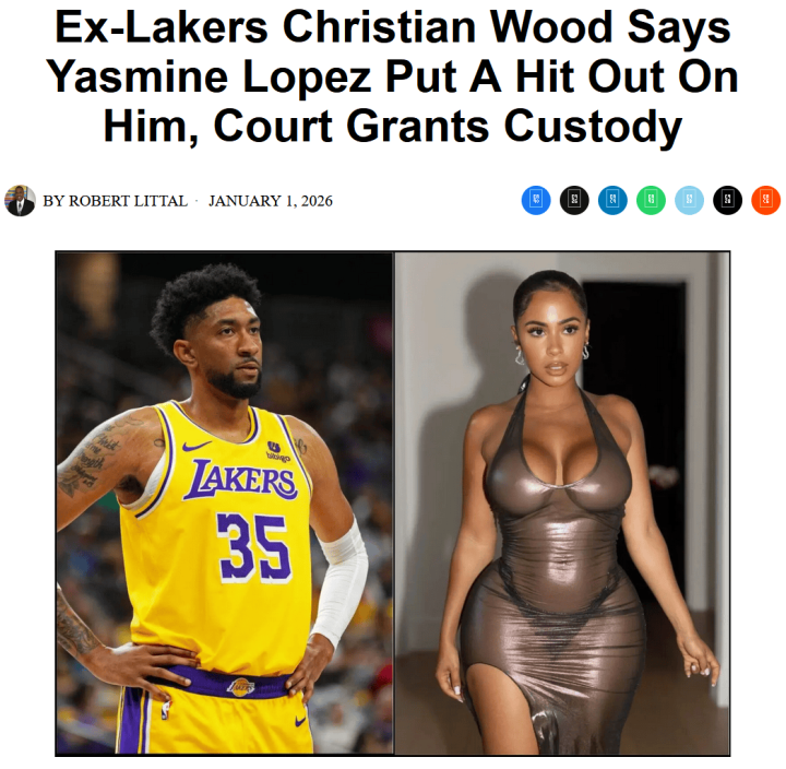 北京时间1月2日,NBA常规赛继续进行。根据美媒报道称,前湖人中锋克里斯蒂安-伍德指控前女友Yasmine Lopez雇凶谋杀,并成功向法院申请临时限制令,同时获得了两人2岁儿子的临时单独监护权。